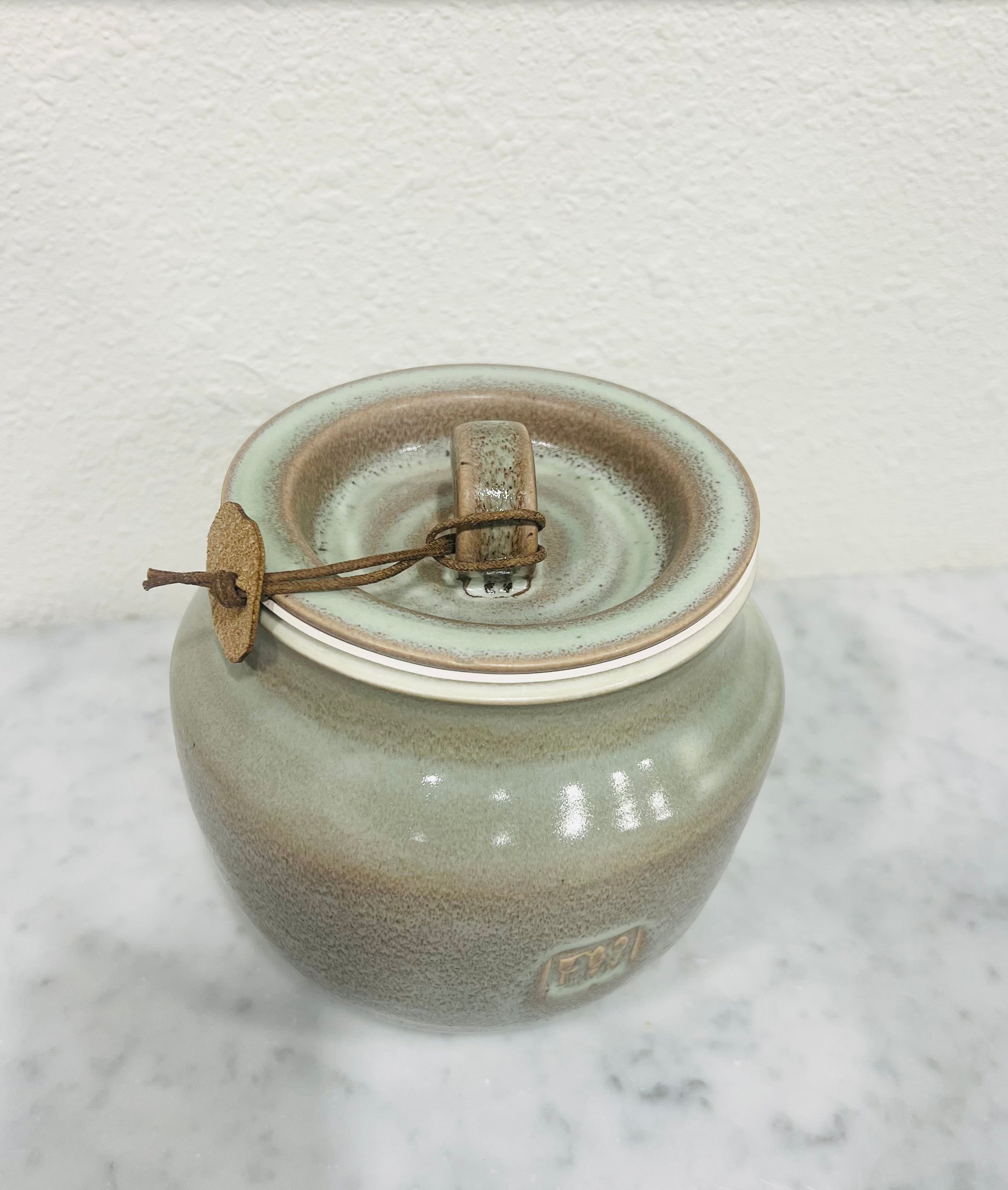 This Sage Green salt jar is handmade for The Food Nanny to fit one full bag of Gros French gray salt. Each one is unique so slight variations may occur in color and style.