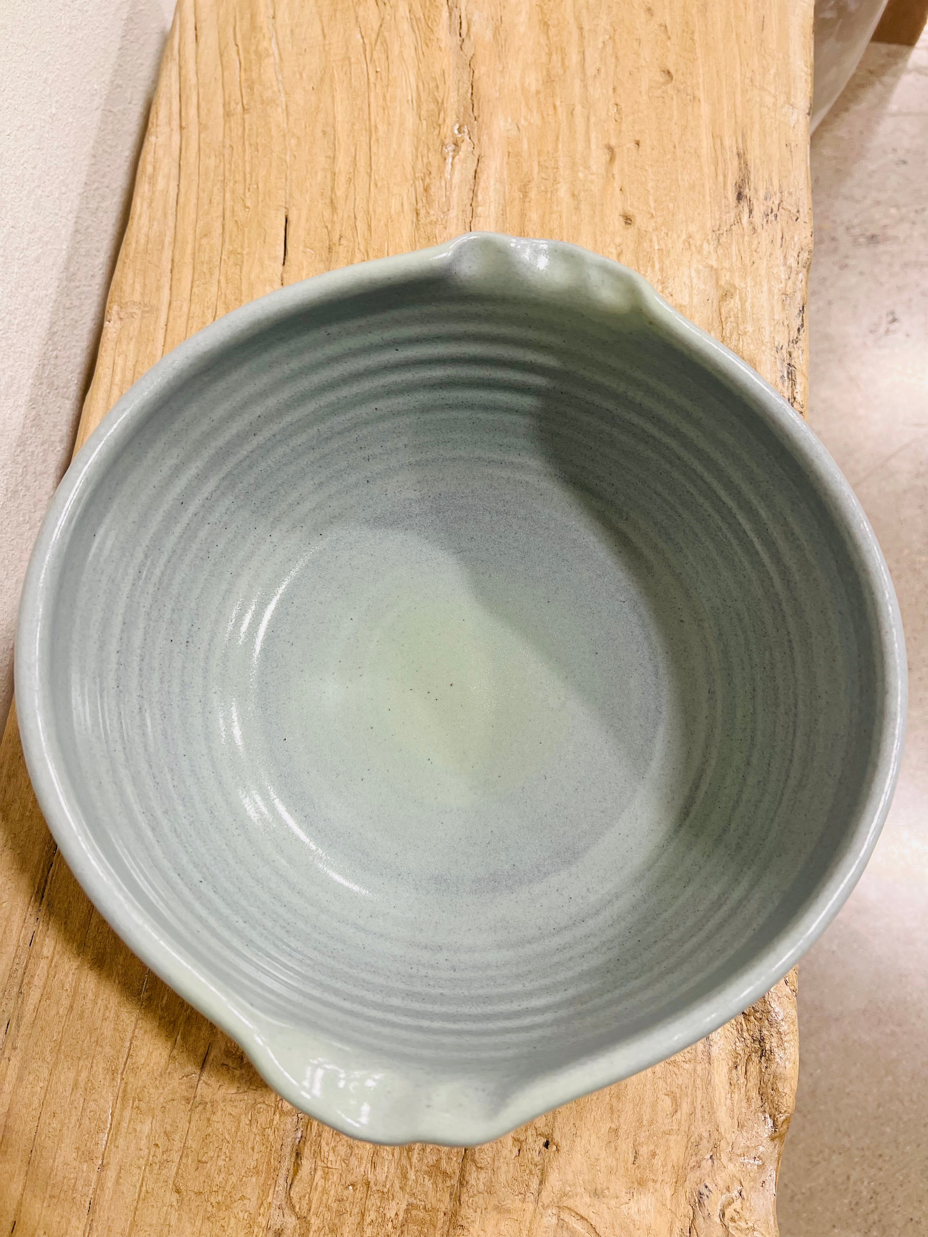 Handmade for The Food Nanny so slight variations may occur in color and style. Handmade Food Nanny Logo. Holds 13-14 cups of liquid batter. This is the perfect size for a batch of pancakes, home made dressings, sauces etc.